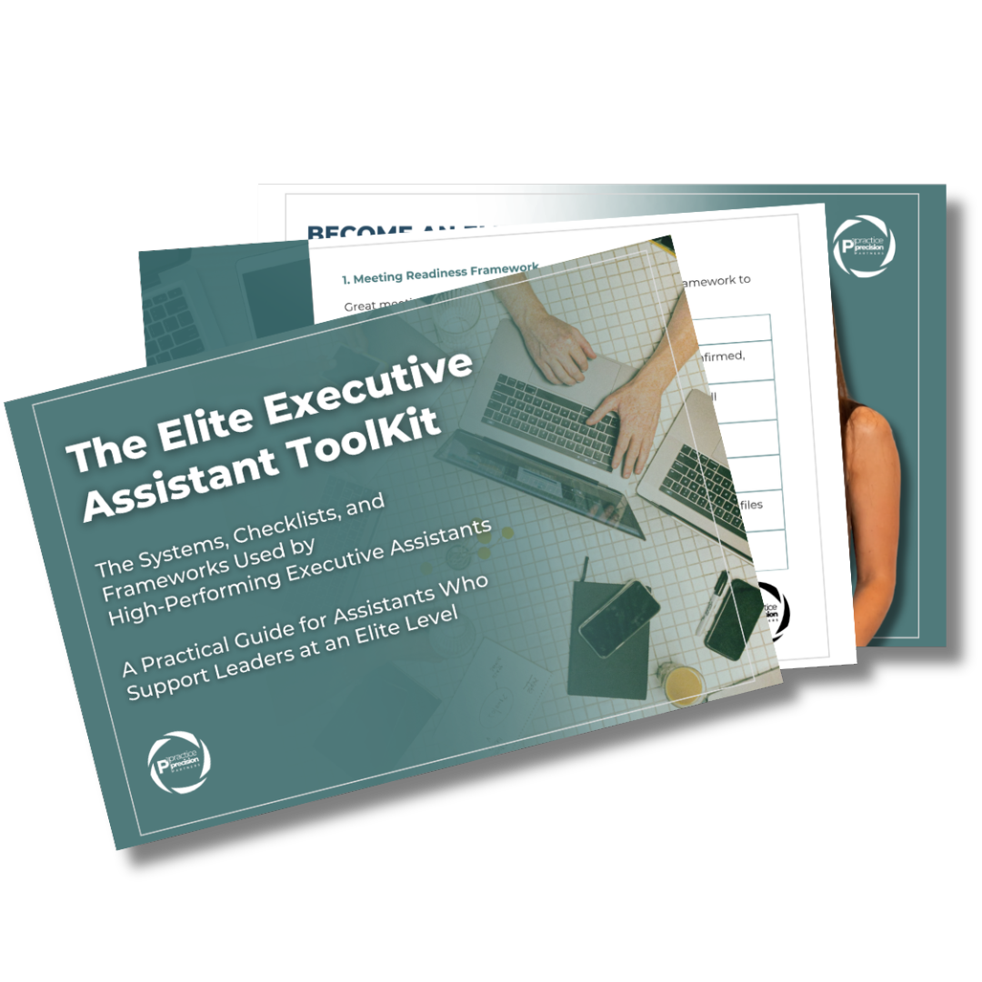 The Elite Executive Assistant Toolkit is a practical resource designed to help executive assistants create more structure, clarity, and confidence in their role. Inside, you’ll find essential tools, systems, and support to help you stay organized, proactive, and effective behind the scenes.
